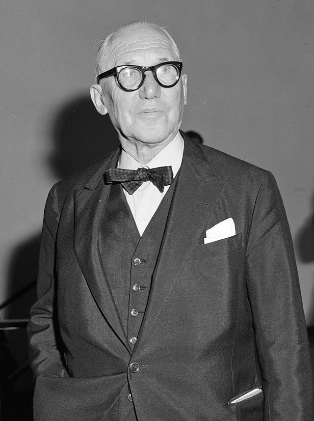 而這份帶著走的力量,來自他把人體當成尺。柯比意用「模矩(Modulor)」把人體工學與黃金比例串成可落地的設計語言:門的高度、窗的節奏、階梯的起伏、停頓的距離,都在照顧你的步伐與視線。你也會在同一條脈絡裡,看見他如何從純粹主義走向粗獷語彙——材料變厚、光變深、情感變直接,理性仍在,但它開始學會把詩意安放在日常尺度裡。