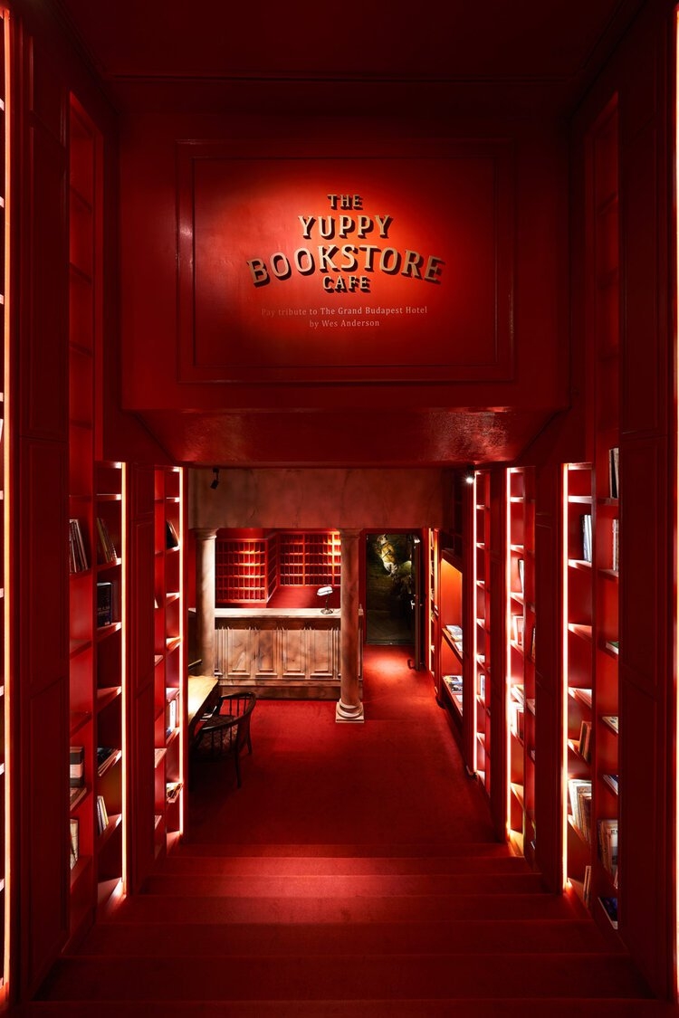 在熱鬧的東區街頭,跟著一隻穿戴整齊的白兔,來到老舊的商業大樓。穿過狹長的紅色書廊,映入眼簾的不是《愛麗絲夢遊仙境》的蓊鬱森林,而是復古典雅的藝文空間「雅痞書店」。