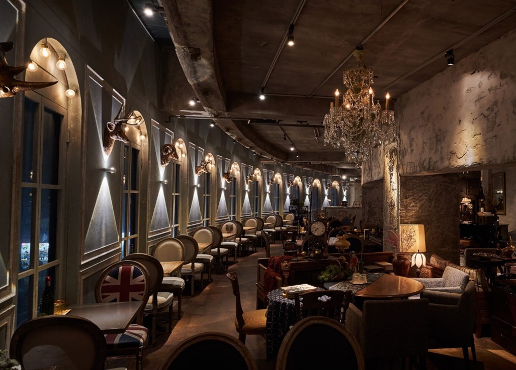 走進雅痞,立刻可以感受到三〇年代法國巴黎的濃厚氣息,斑駁的巴洛克雕花,洋溢著頹靡浪漫的藝文風情,牆面正中央掛著鏽蝕大鐘,以時針指向七點半19:30,象徵回到1930藝術人文薈萃的黃金年代。