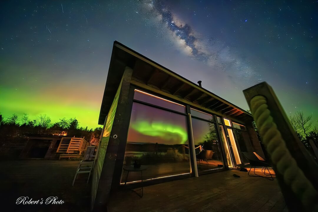拉普蘭河畔的極光玻璃屋,最夢幻的不是建築,而是你抬頭看到的那一刻:極光和銀河同框,整片天空像被打開的宇宙劇院!(2025/10 拉普蘭河畔 極光玻璃屋)