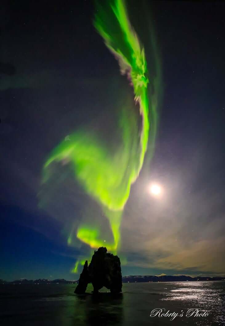 2025/11 冰島追光「說走就走」,第一晚就直接中獎!在恐龍石旁迎來冰島第一個皇冠夜,光冠一炸開,瞬間就知道:這趟旅程會很不講理地精彩!(2025/11 冰島|恐龍石 皇冠夜)