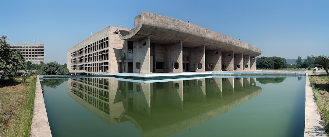 香第革行政中心坐落於北印度平原邊緣,遠處山影提醒你:這裡是一座被新秩序重新書寫的城市。高等法院、議會大廈、秘書處以粗獷混凝土立起巨大的水平與垂直面,遮陽板與深窗把炙熱日照切成可居住的陰影節奏。你會在坡道、平台、倒影水池與廣場之間被引導前進,視線被尺度反覆拉遠又拉近,粗面肌理近看像岩層,午後陰影更深,像走進公共秩序的儀式。別錯過「開放之手」象徵——它把城市理想從權力語言,轉回交換、接受與共享的姿態。