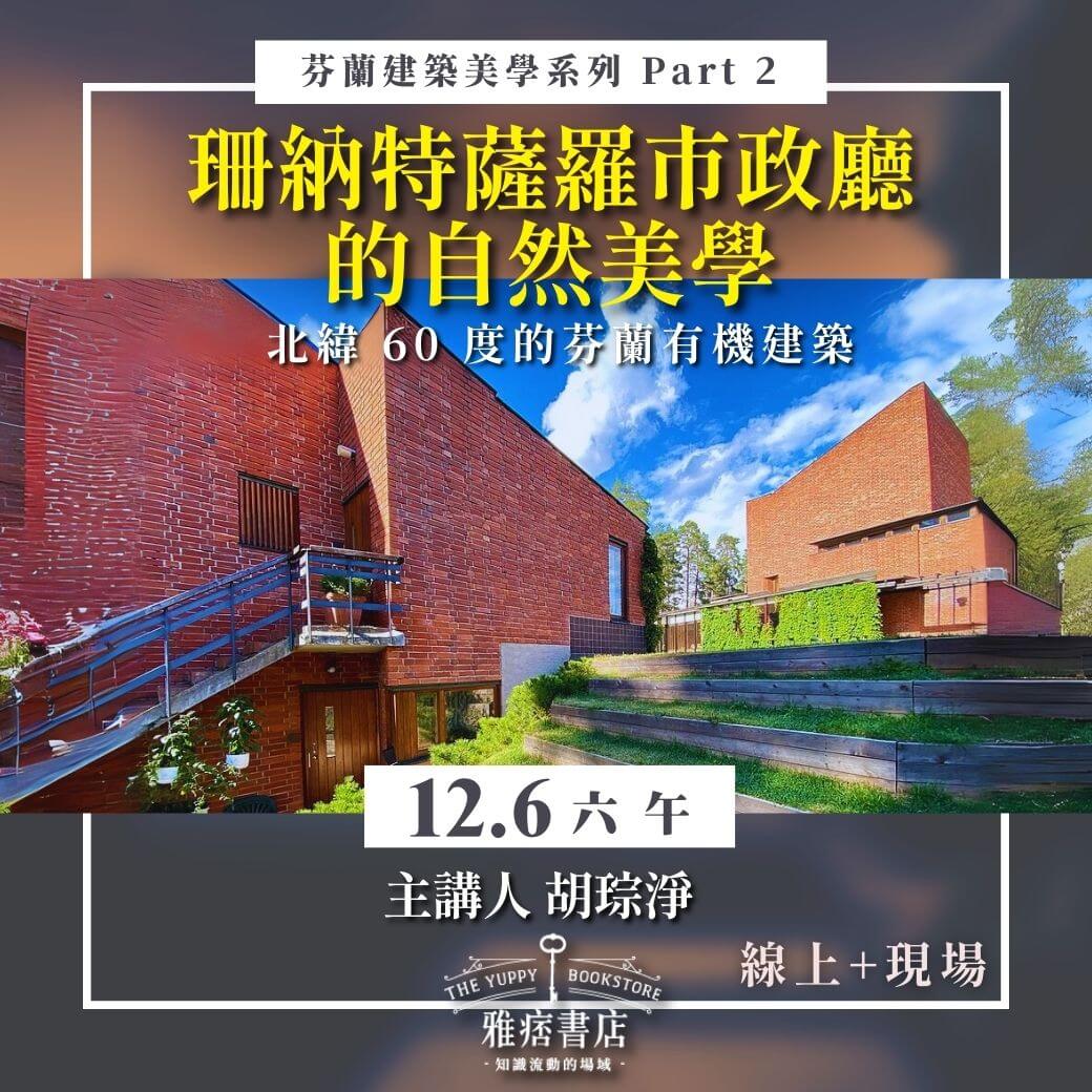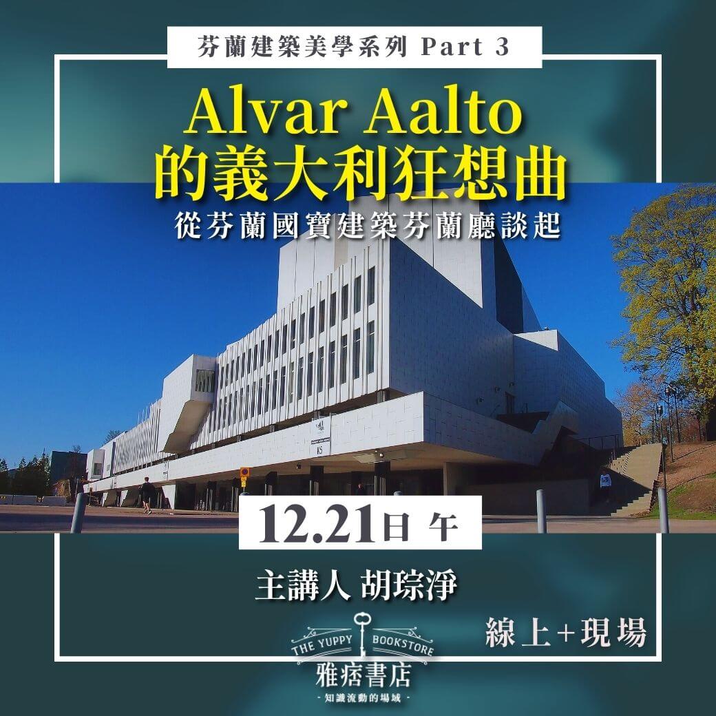 在建築學者 胡琮淨 的帶領下,三場講座將像一趟建築旅行:第一場回到赫爾辛基的 Aalto 自宅與瑪麗亞住宅,探討他如何以曲木工藝與自然材料,打造「最有人情味」的現代住宅;第二場走進珊納特薩羅市政廳,認識他將光線、地形、鄉土元素融入公共建築的「有機建築」精神;第三場則從芬蘭廳談起,看 Aalto 如何將義大利旅行的靈感轉化為歐洲建築經典!